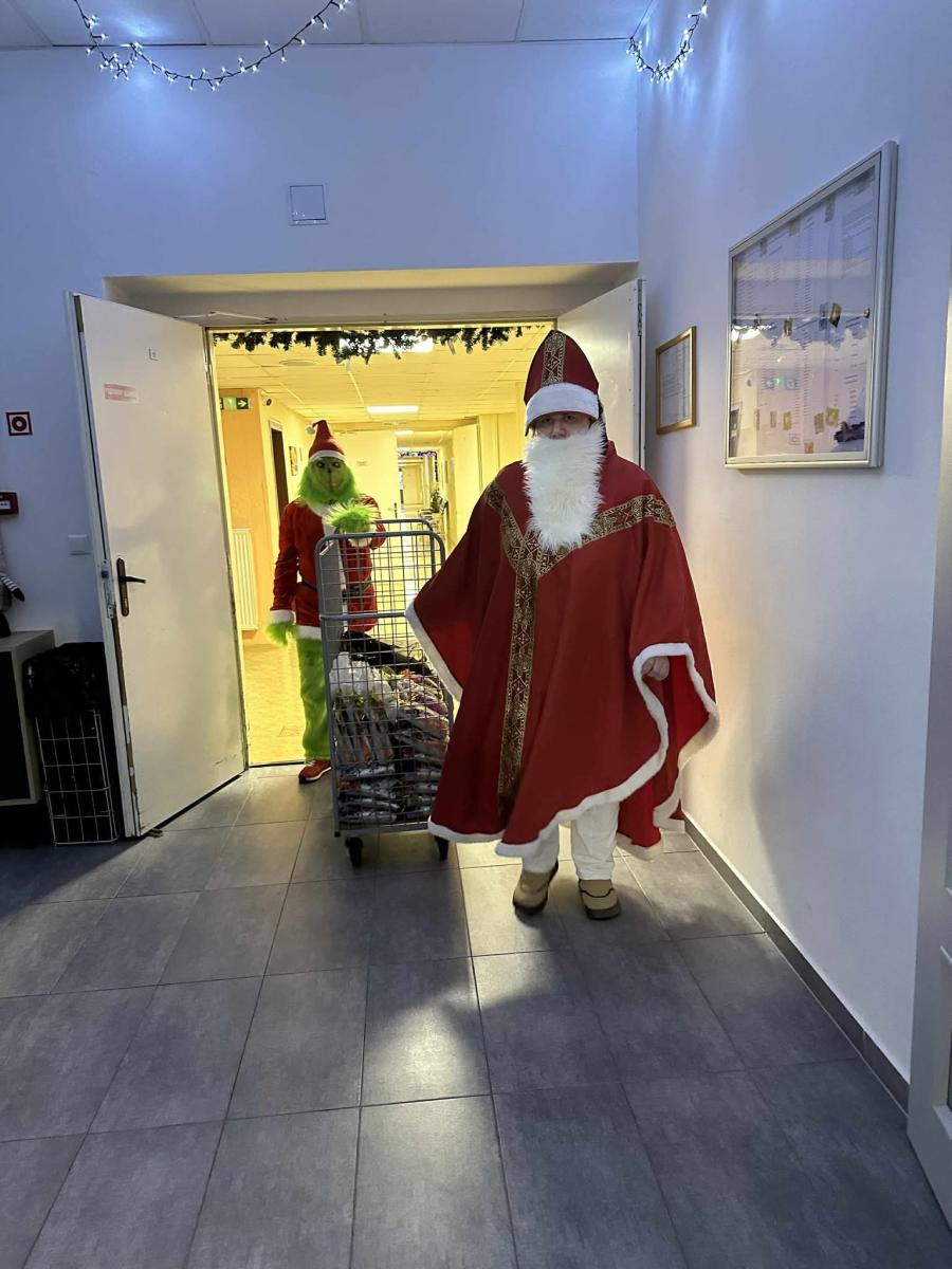 Dňa 05.12.2025 sa v zariadení uskutočnila tradičná Mikulášska oslava, ktorá prebehla v pokojnej a priateľskej atmosfére. Podujatie bolo zamerané na podporu sociálnej aktivizácie PSS a posilnenie pozitívnych spoločenských zážitkov. PSS navštívil Mikuláš v sprievode Grincha, ktorí svojou prítomnosťou vytvorili príjemný a motivujúci zážitok. Počas programu boli PSS obdarovaní balíčkami, prispôsobenými ich potrebám a možnostiam. Súčasťou podujatia bolo aj pohostenie, ktoré podporilo spoločenský aspekt stretnutia. Imobilných PSS Mikuláš a jeho sprievod navštívili priamo na izbách, aby sa zabezpečila rovnaká dostupnosť zážitku pre všetkých prijímateľov. Realizácia podujatia naplnila svoj cieľ – posilniť sociálny kontakt, podporiť pozitívnu emočnú skúsenosť a vytvoriť inkluzívne prostredie pre všetkých PSS.