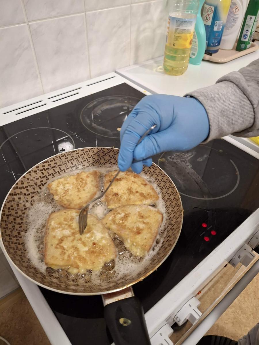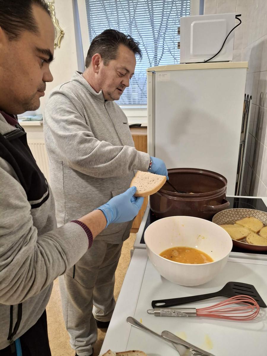 V rámci gastrokrúžku sa prijímatelia sociálnych služieb zapojili do prípravy chleba vo vajíčku. Aktivita podporila samostatnosť, jemnú motoriku a rozvoj praktických zručností v kuchyni. Prijímatelia sociálnych služieb sa aktívne zapájali a zažili pocit užitočnosti a úspechu.
