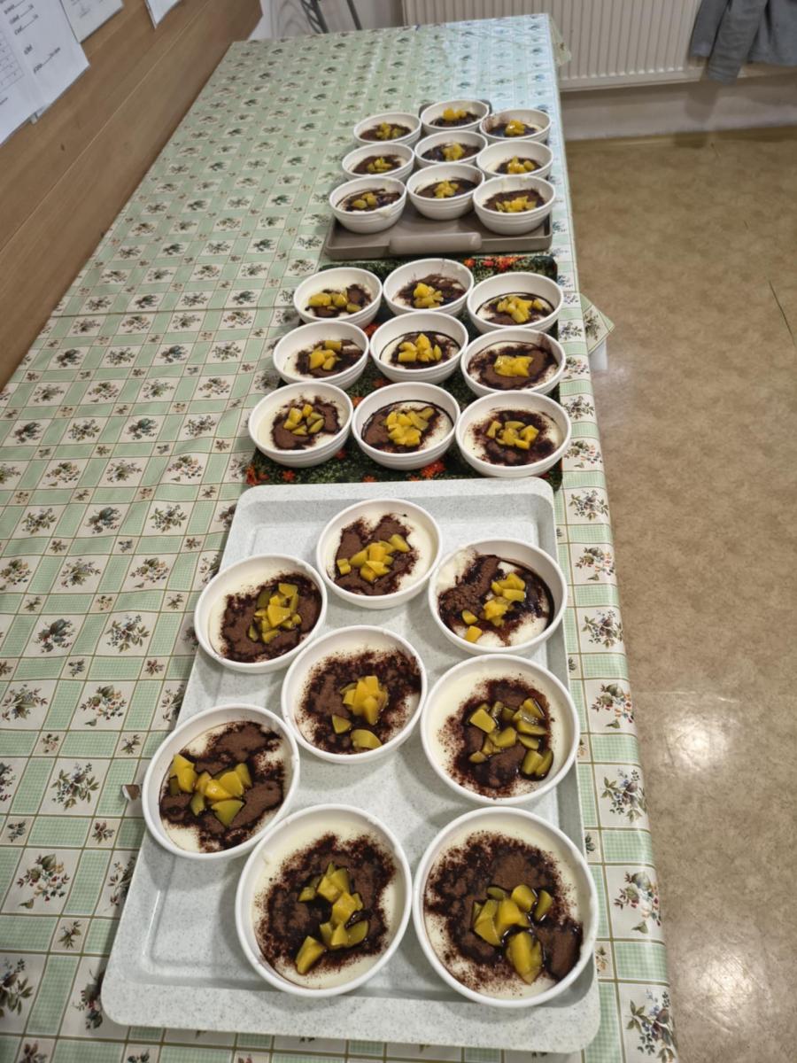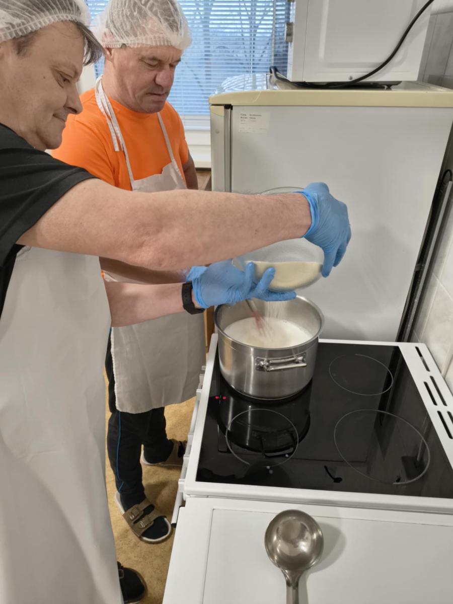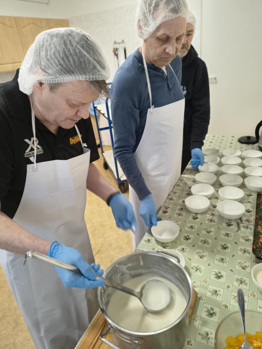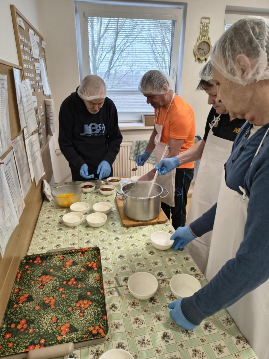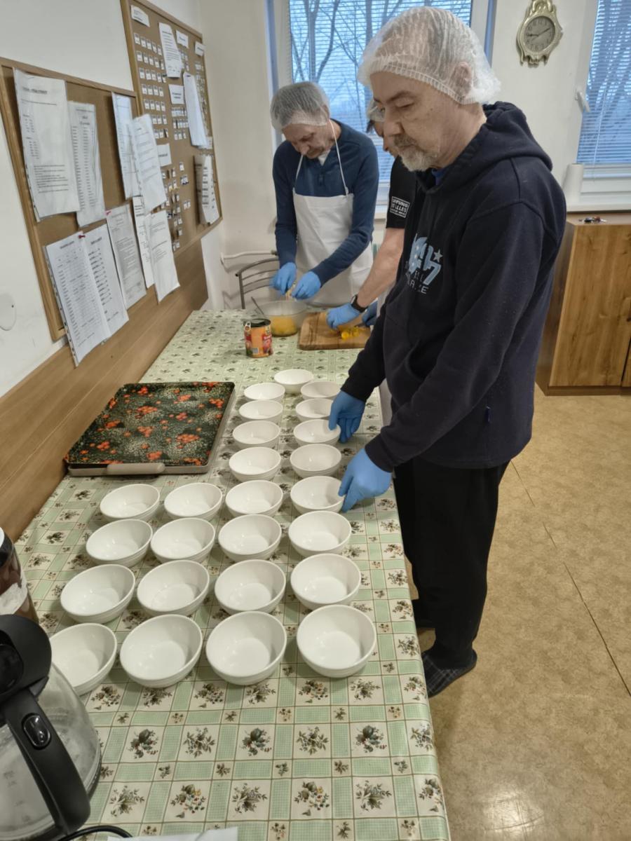 V rámci pracovných činností prijímatelia sociálnych služieb pripravili krupicovú kašu s broskyňou a kakaom. Aktivita rozvíjala praktické zručnosti, podporovala zmyslové vnímanie a posilňovala sebadôveru prijímateľov sociálnych služieb. Spoločná príprava jedla mala aj sociálny a motivačný význam.