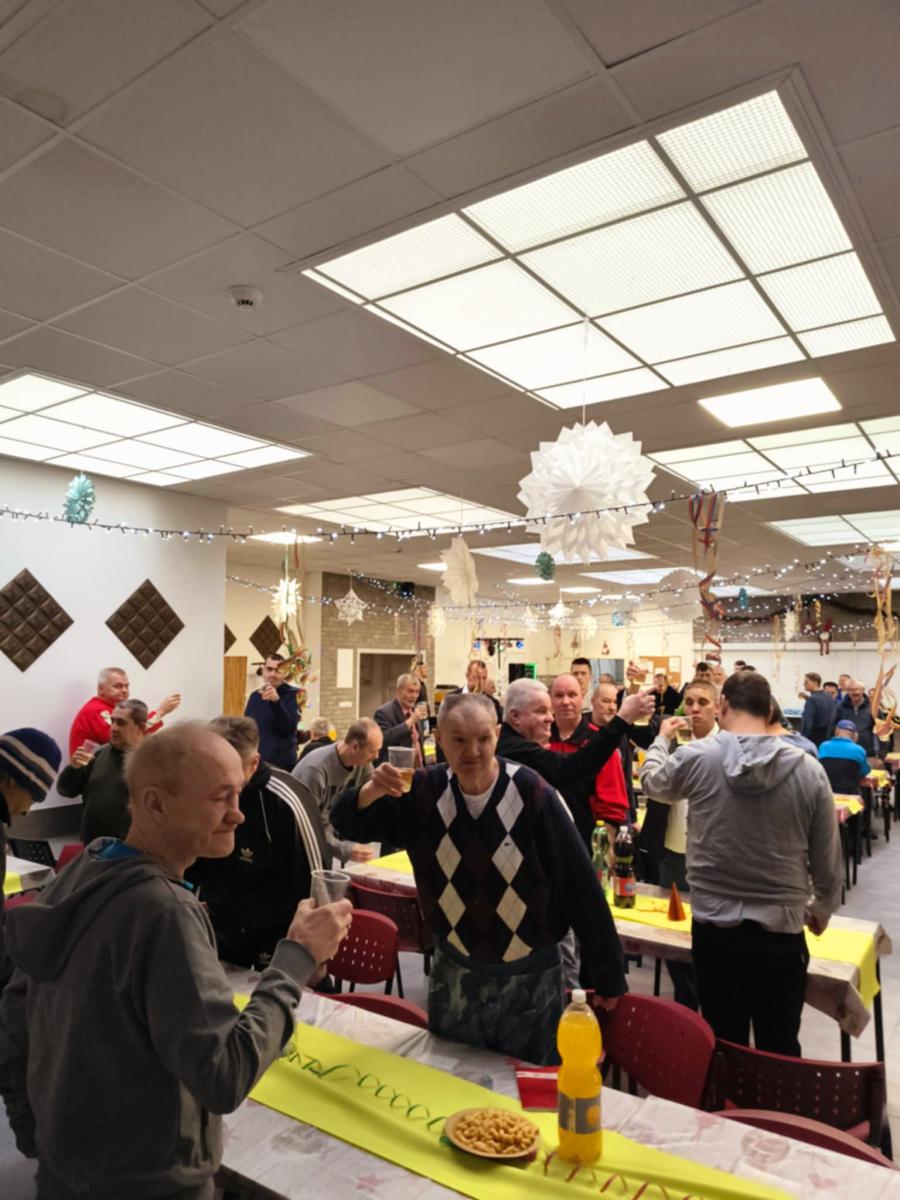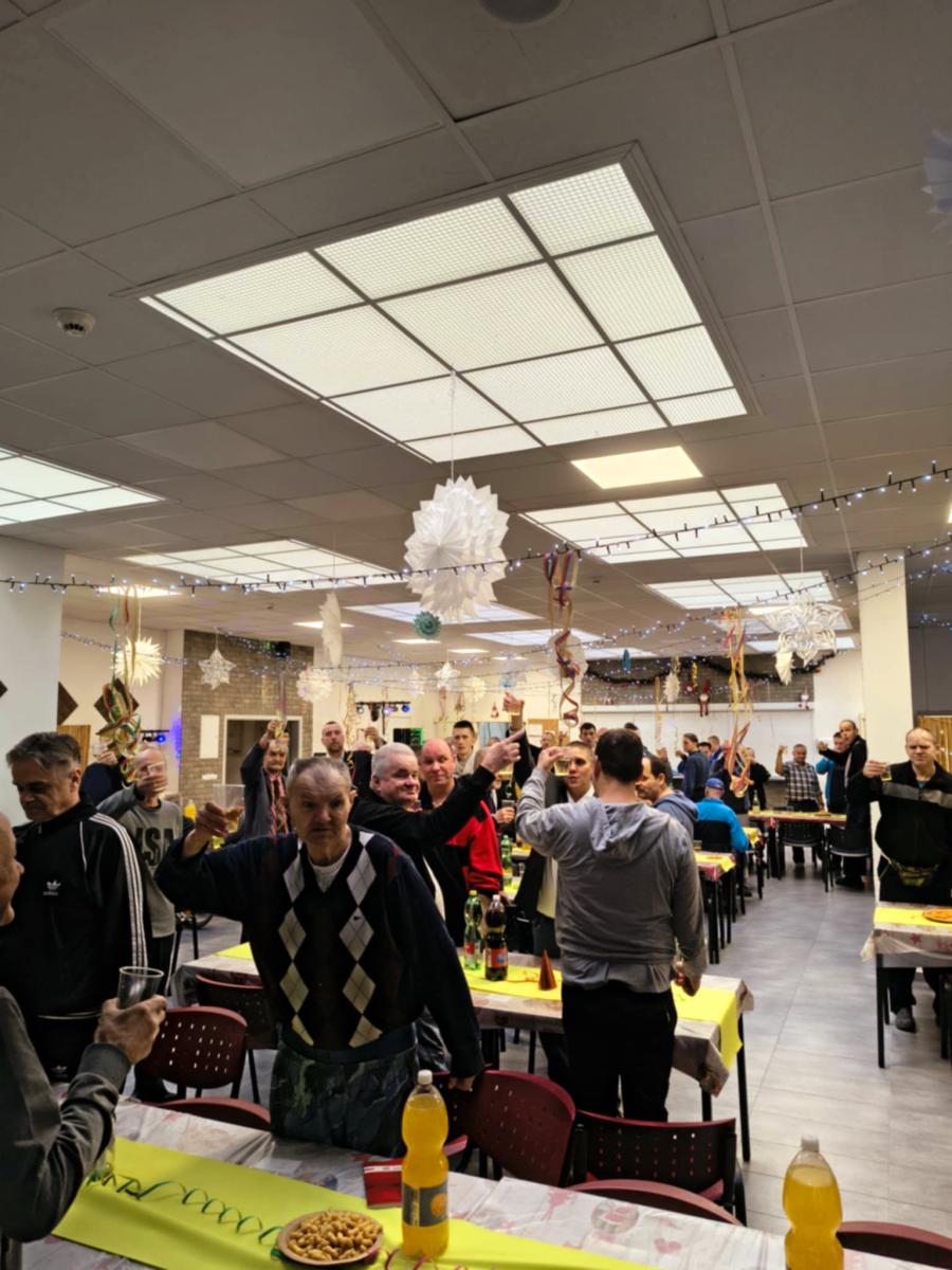 Dňa 31. 12. 2025 sa v zariadení uskutočnila silvestrovská oslava, ktorá prebiehala v príjemnej a radostnej atmosfére. Prijímatelia sociálnych služieb si spoločne pripili na príchod nového roka nealkoholickým šampanským a bolo pre nich zabezpečené silvestrovské pohostenie. V rámci programu boli prijímatelia sociálnych služieb ocenení za spoluprácu, šikovnosť a dosiahnuté výsledky v športových aktivitách, čím sa podporila ich motivácia, sebaúcta a pocit uznania. Následne pokračovala tanečná zábava. Celé podujatie sa nieslo vo veselej, priateľskej a pozitívnej atmosfére, ktorá prispela k posilneniu sociálnych vzťahov a celkovej psychickej pohody prijímateľov sociálnych služieb.
