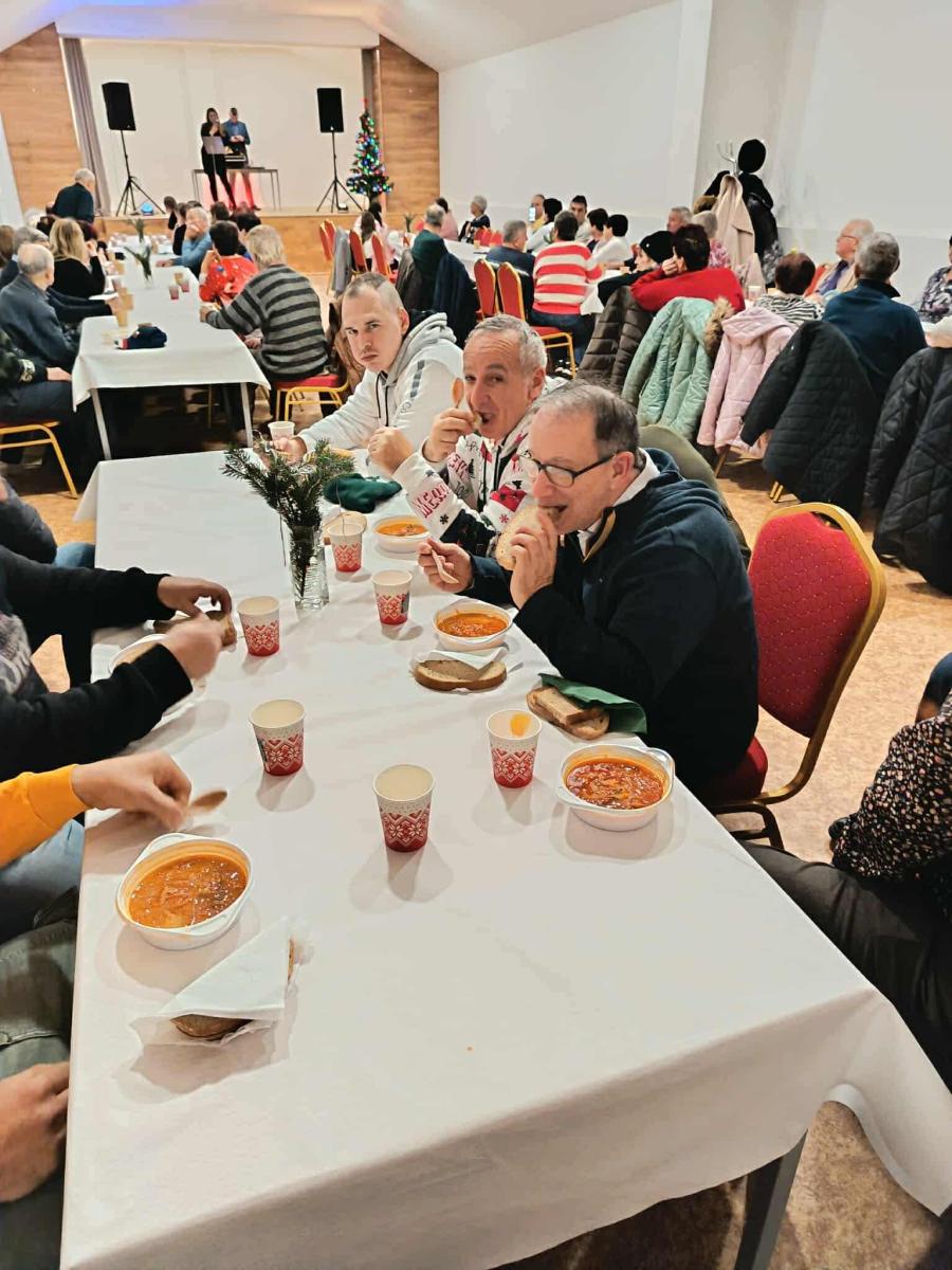 Starosta obce Horný Bar, pán Štefan Bodó, pozval prijímateľov sociálnych služieb nášho zariadenia na pohostenie, ktoré sa uskutočnilo dňa 13.12.2025 v kultúrnom dome obce. Podujatie prebehlo v príjemnej a dôstojnej atmosfére, prispelo k posilňovaniu sociálnych kontaktov PSS a k podpore ich začleňovania do spoločenského života obce. Ďakujeme za pozvanie, srdečné prijatie a vytvorenie podmienok na zmysluplné spoločenské stretnutie.