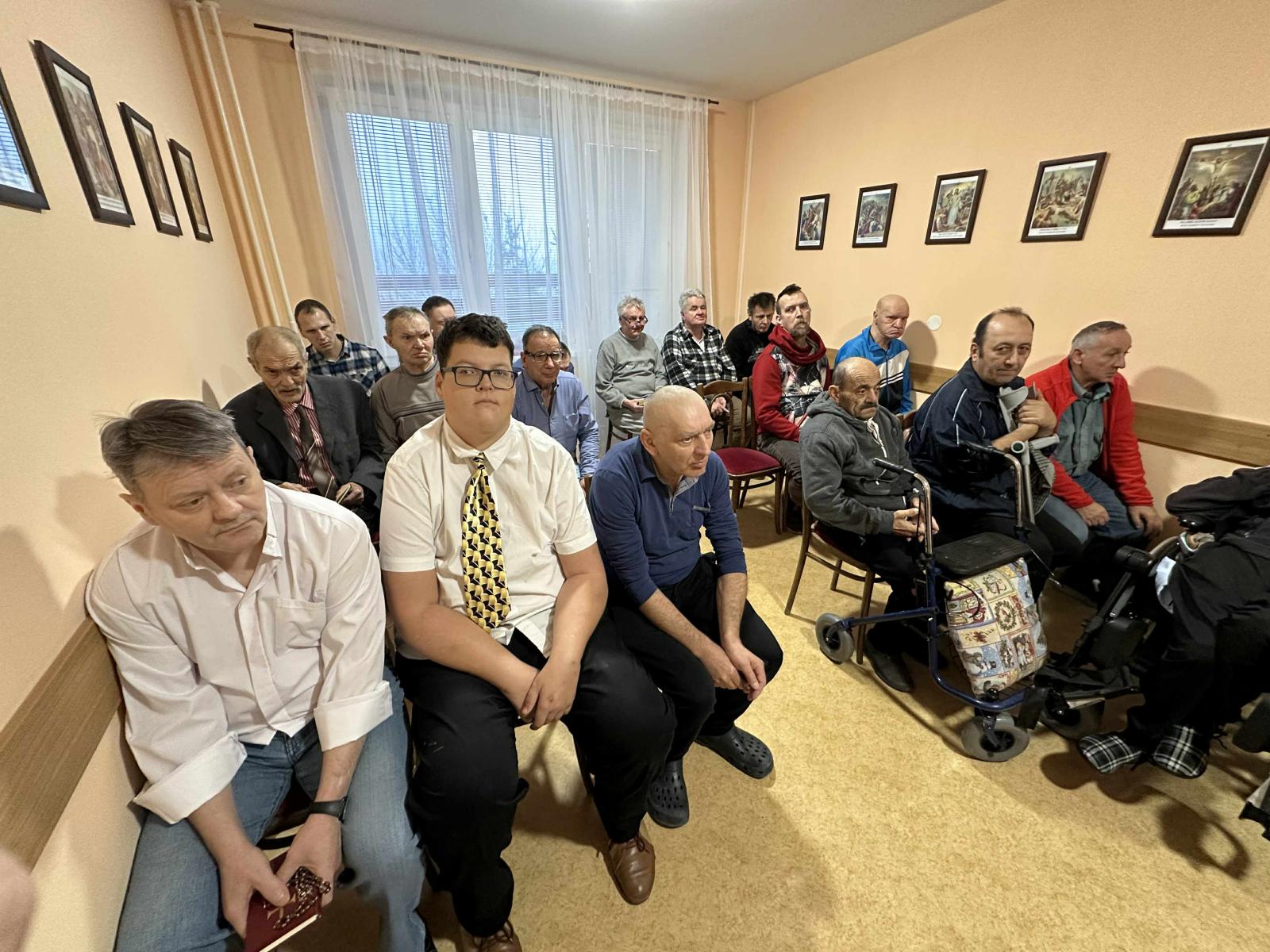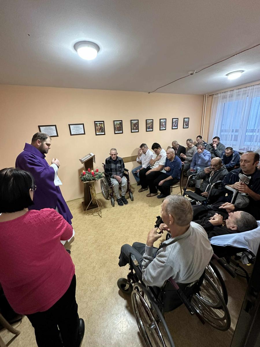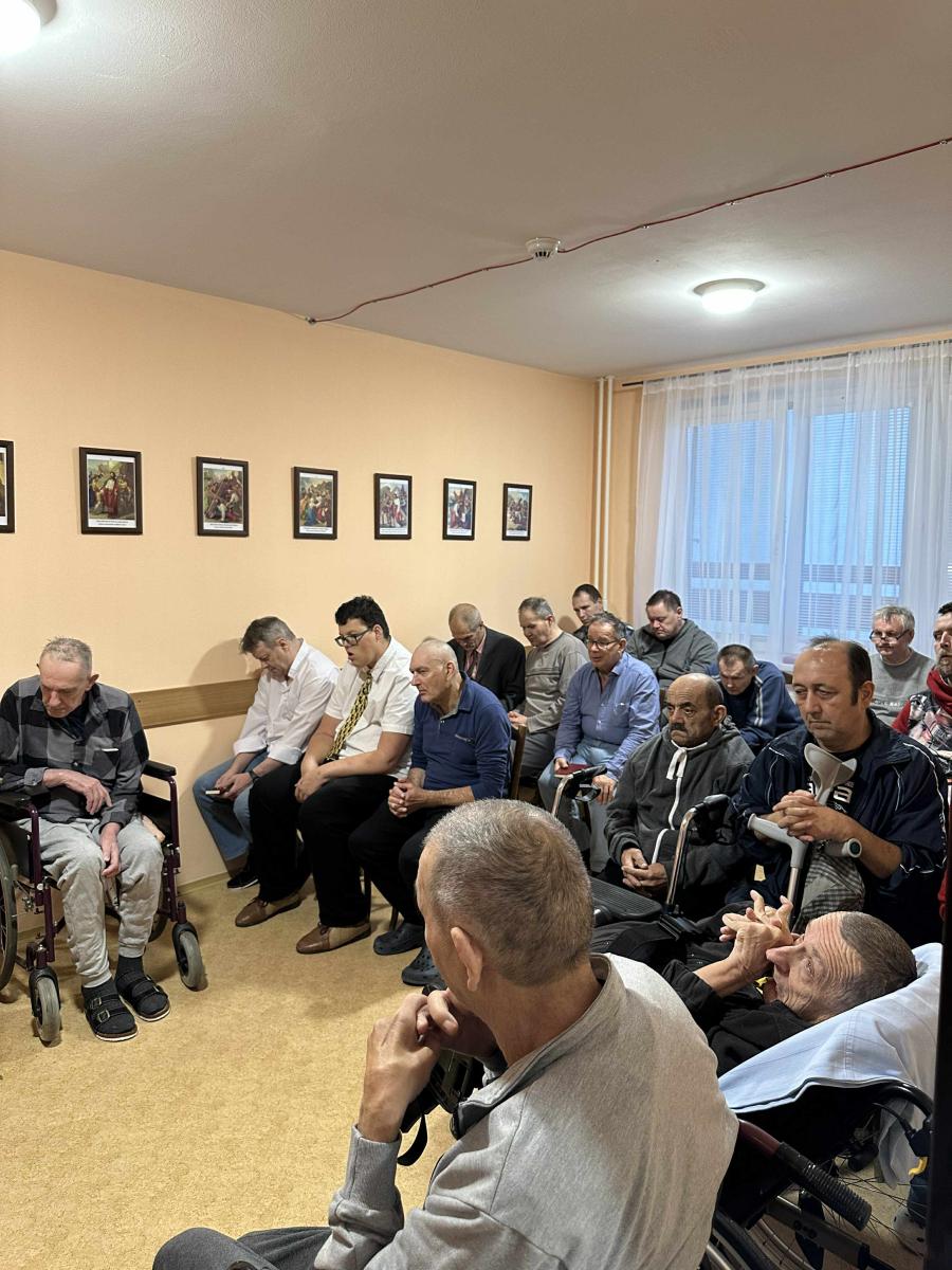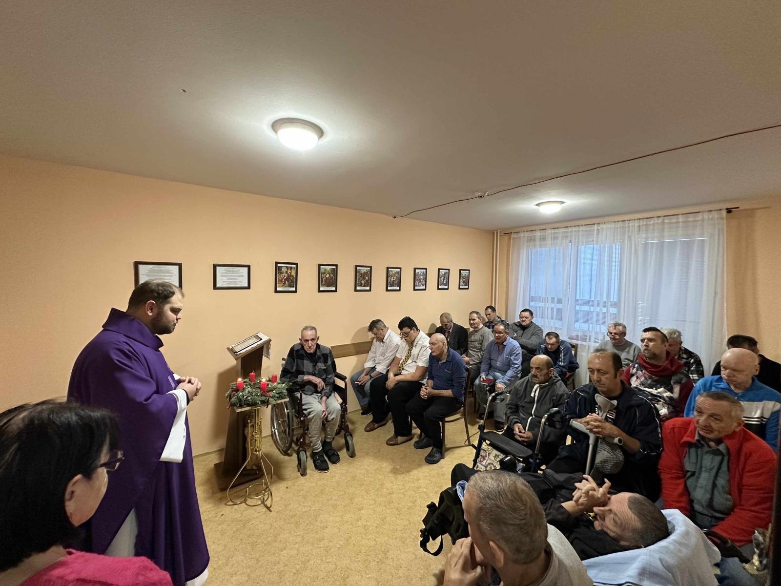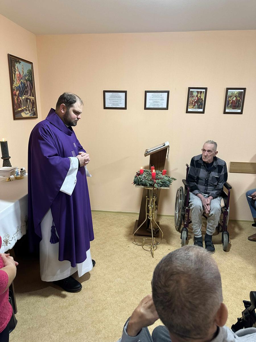 Dňa 09.12.2025 sa v zariadení konala svätá omša, ktorá bola organizovaná ako podporná spirituálna aktivita pre prijímateľov sociálnej služby. Podujatie viedol kňaz z miestnej farnosti a jeho prítomnosť prispela k vytvoreniu pokojnej a dôstojnej atmosféry. PSS sa aktívne zapájali do spoločných modlitieb, omša poskytla priestor na duchovné posilnenie, reflexiu a vnútorné upokojenie. Pre imobilných PSS bola zabezpečená asistovaná účasť, aby im bola spirituálna podpora rovnako dostupná. Svätá omša bola realizovaná v súlade s individuálnymi potrebami prijímateľov a rešpektovaním ich náboženského presvedčenia. Aktivita naplnila svoj cieľ podporiť spirituálnu pohodu PSS, posilniť komunitného ducha a prispieť k celkovej kvalite ich života v zariadení.