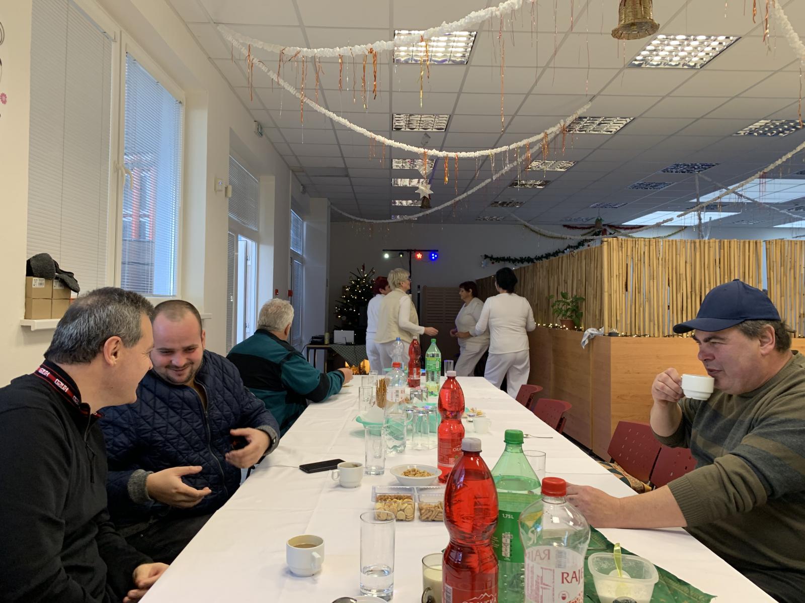 Dňa 02.01.2020 sa na pozvanie pána riaditeľa DSS Mgr. Bélu Fenesa uskutočnilo posedenie za účelom privítania Nového roka 2020 pre všetkých zamestnancov z každého úseku. Spoločne privítal zúčastnených, poďakoval za vykonanú prácu, povzbudil, zdôraznil vzájomnú kooperáciu, predstavil víziu a spoločné ciele do budúcnosti. Pán riaditeľ zabezpečil pre zamestnancov občerstvenie a nesmela chýbať ani novoročná kapustnica, ktorú varili zamestnanci DSS a chutila výborne. O hudbu sa opäť postaral náš klient DJ Bobek. Pri pripravenom občerstvení sa zamestnanci porozprávali, popriali zdravie, úspechy v nasledujúcej spoločnej práci. Zamestnanci sa cítili veľmi dobre a mali vynikajúcu náladu. Na privítanie Nového roka 2020 boli pozvaní aj naši milí sponzori. Pánovi riaditeľovi sa chceme poďakovaťza pozvanie a pripravené občerstvenie.